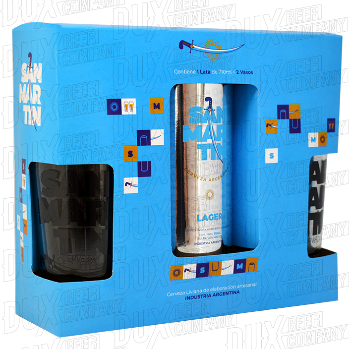 San Martin Lager Artesanal Gift Pack Latón 710 ml + 2 Vasos con Logo